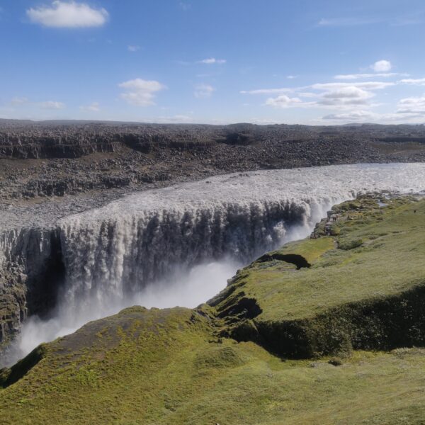 La cascade de Dettifoss est l’une des chutes d’eau les plus puissantes d’Europe, avec ses eaux tumultueuses chutant dans un canyon impressionnant. Son environnement sauvage permet de randonner une heure environ, les circuits sont balisés, et vous mèneront à une autre cascade, celle de Selfoss. Les photos par temps clair permettent de capturer des arcs-en-ciel magnifiques à travers les gouttes d’eau !