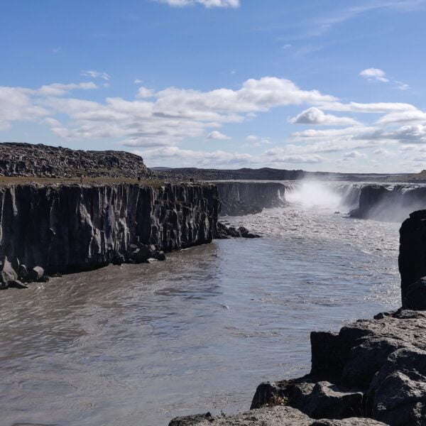 Pour rejoindre la célèbre cascade de Dettifoss depuis Akureyri il vous faudra environ 1H30. Attention d’ailleurs, il y a 2 routes pour partir vers le nord/est, une gratuite qui longe la côte, et une qui comprend un tunnel/péage et qui vous fera gagner 10min de route. (Il faut payer en ligne sur le site veggjald.is avant ou après votre passage).